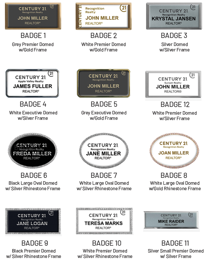 Make a great first impression. Choose from the following designs. Each badges comes with magnetic fastners. Prices range from $28-$41 (includes shipping).